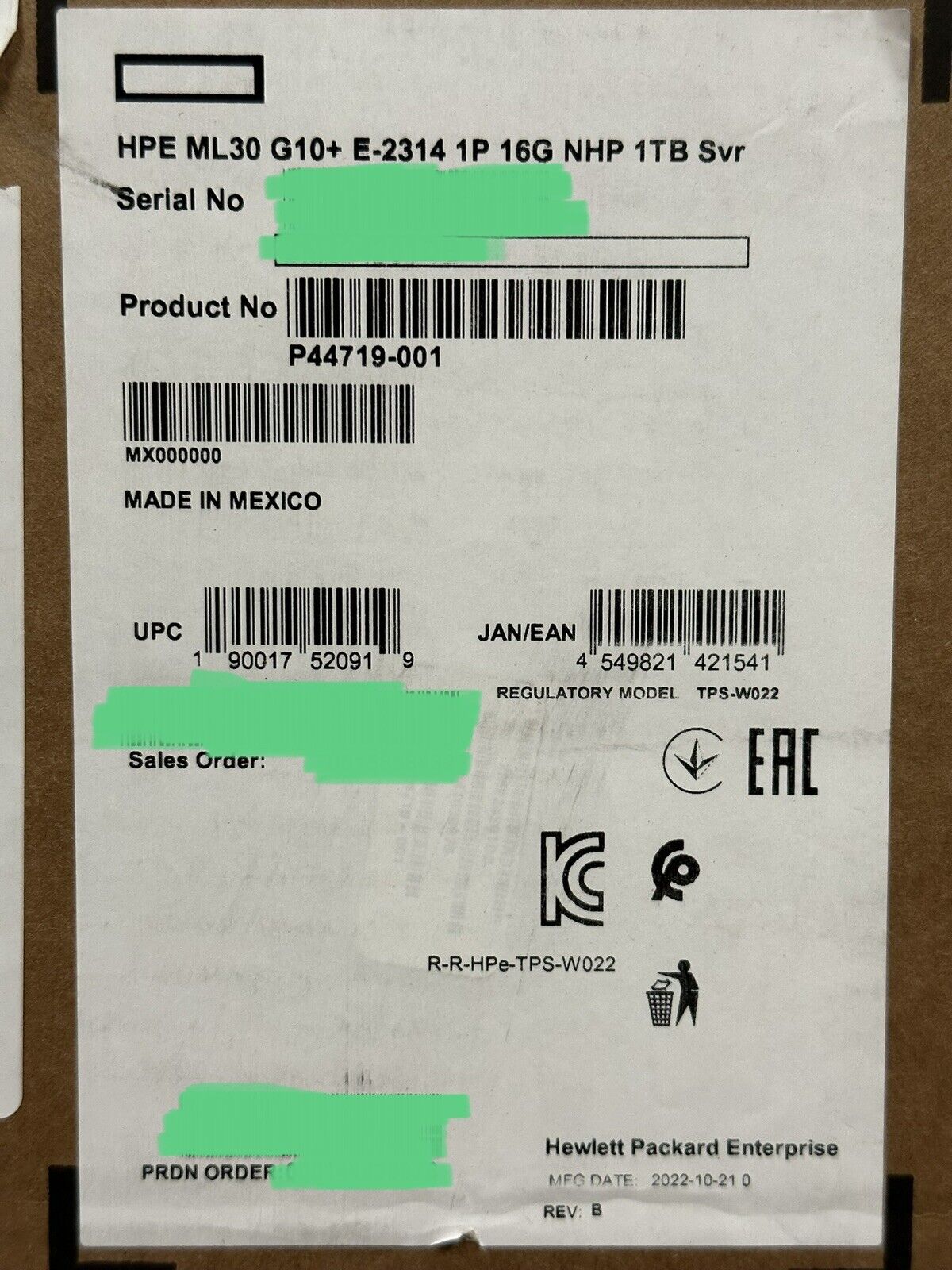 Detailed product descriptionHPE ProLiant ML30 Gen10 Plus tower server with one Intel® Xeon® E-2314 processor. 16 GB memory. 1TB SATA HDD. 4 large form factor non-hot-plug chassis. and one 350W non-hot-plug power supply